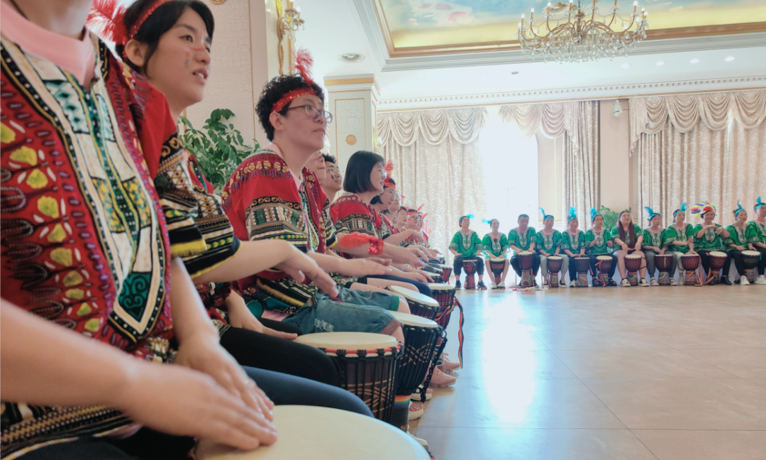 同步:通過學(xué)習(xí)和表演非洲鼓來建立團(tuán)隊一致的技巧和態(tài)度,大家一起學(xué)習(xí),一起行動,奏出最美的音樂。